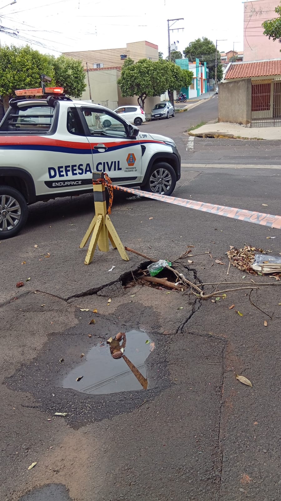A Coordenadoria de Proteção e Defesa Civil de Presidente Prudente, foi acionada neste sábado para atender ocorrências relacionadas a situações de risco em vias públicas. Em todos os atendimentos, foram identificados buracos formados em decorrência do grande volume de chuvas registrado nos últimos dias. As equipes realizaram a sinalização emergencial dos locais para garantir a segurança de motoristas e pedestres, além de encaminhar as demandas aos setores responsáveis para a execução dos reparos necessários.