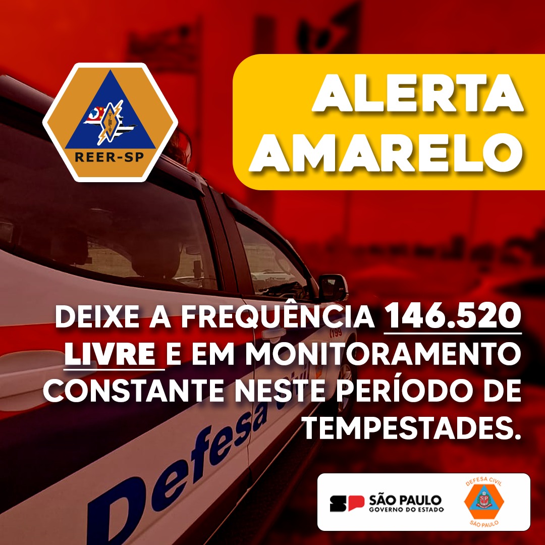 A Defesa Civil do Estado de São Paulo emitiu Alerta Amarelo para diversas regiões do estado, indicando a possibilidade de chuvas fortes, ventos intensos e tempestades localizadas. Esse tipo de alerta é acionado quando há risco de impactos à população, como queda de árvores, alagamentos e danos em estruturas urbanas. Durante esses períodos, a atuação da Rede Estadual de Emergência de Radioamadores (REER-SP) torna-se fundamental. O grupo, composto por voluntários radioamadores credenciados pela Defesa Civil, é responsável por manter a comunicação de emergência em situações críticas, especialmente quando há falhas ou instabilidade nos meios tradicionais, como telefonia e internet, provocadas pelas tempestades que derrubam postes e causam rompimento de cabos. Segundo a Defesa Civil, a frequência 146.520 MHz deve ser mantida livre e sob monitoramento constante durante o período de alerta. Isso permite que mensagens urgentes e pedidos de apoio sejam transmitidos com agilidade e segurança entre os radioamadores e as equipes operacionais da Defesa Civil espalhadas pelo estado.