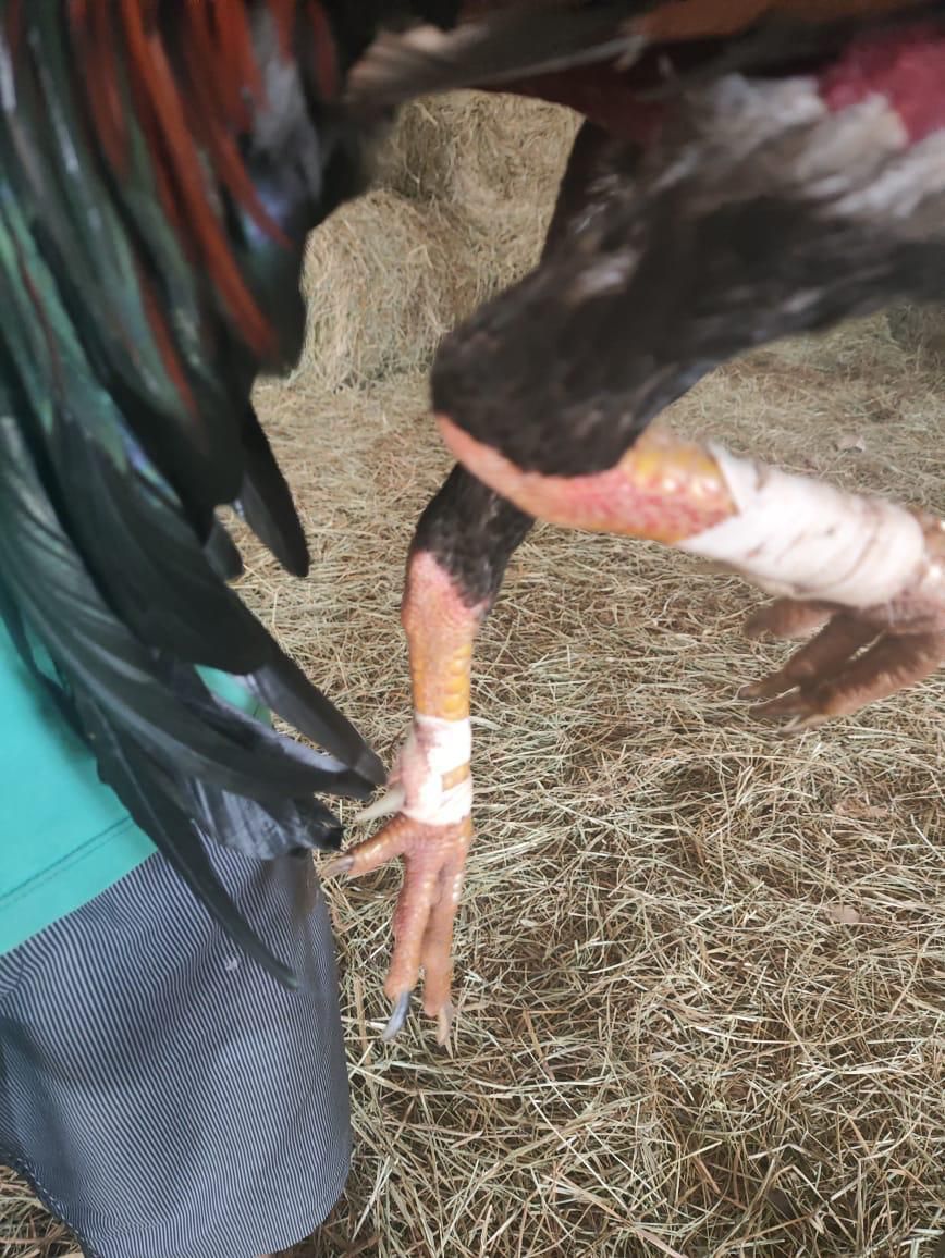 No imóvel também foram localizados diversos compartimentos (viveiros) com galos da raça índio. Um dos animais apresentava ferimentos recentes compatíveis com brigas (hematomas no pescoço, dorso e cabeça, provocados por bicos e esporas, o animal estava equipado para rinha, (com bico e espora de metal).