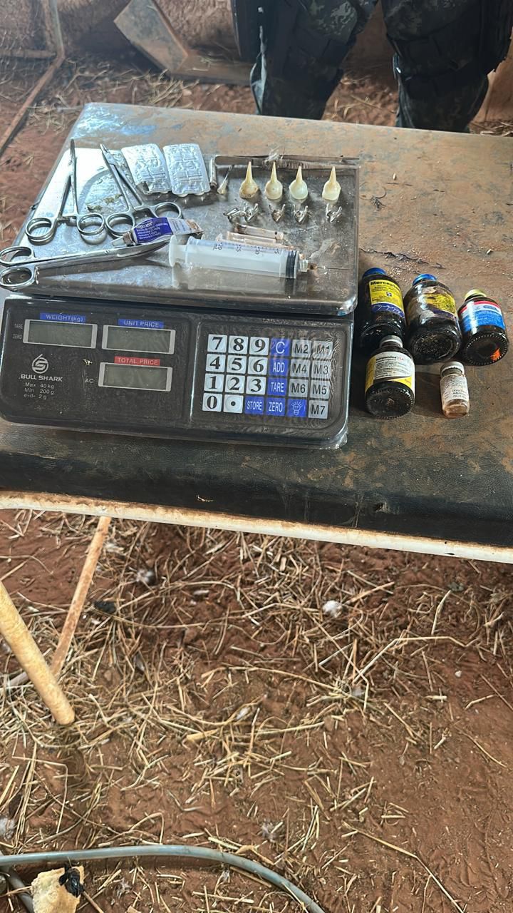 Foram ainda apreendidos diversos materiais característicos da prática ilícita, como esporas artificiais, biqueiras, tesouras cirúrgicas, seringas, medicamentos e pomadas, todos utilizados na preparação e manutenção dos animais para combates.