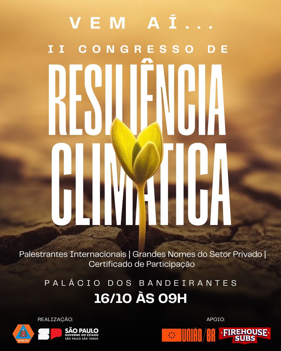 O II Congresso de Resiliência Climática é uma realização do Governo do Estado de São Paulo, por meio da Defesa Civil Estadual, com apoio da União BR e da Firehouse Subs.