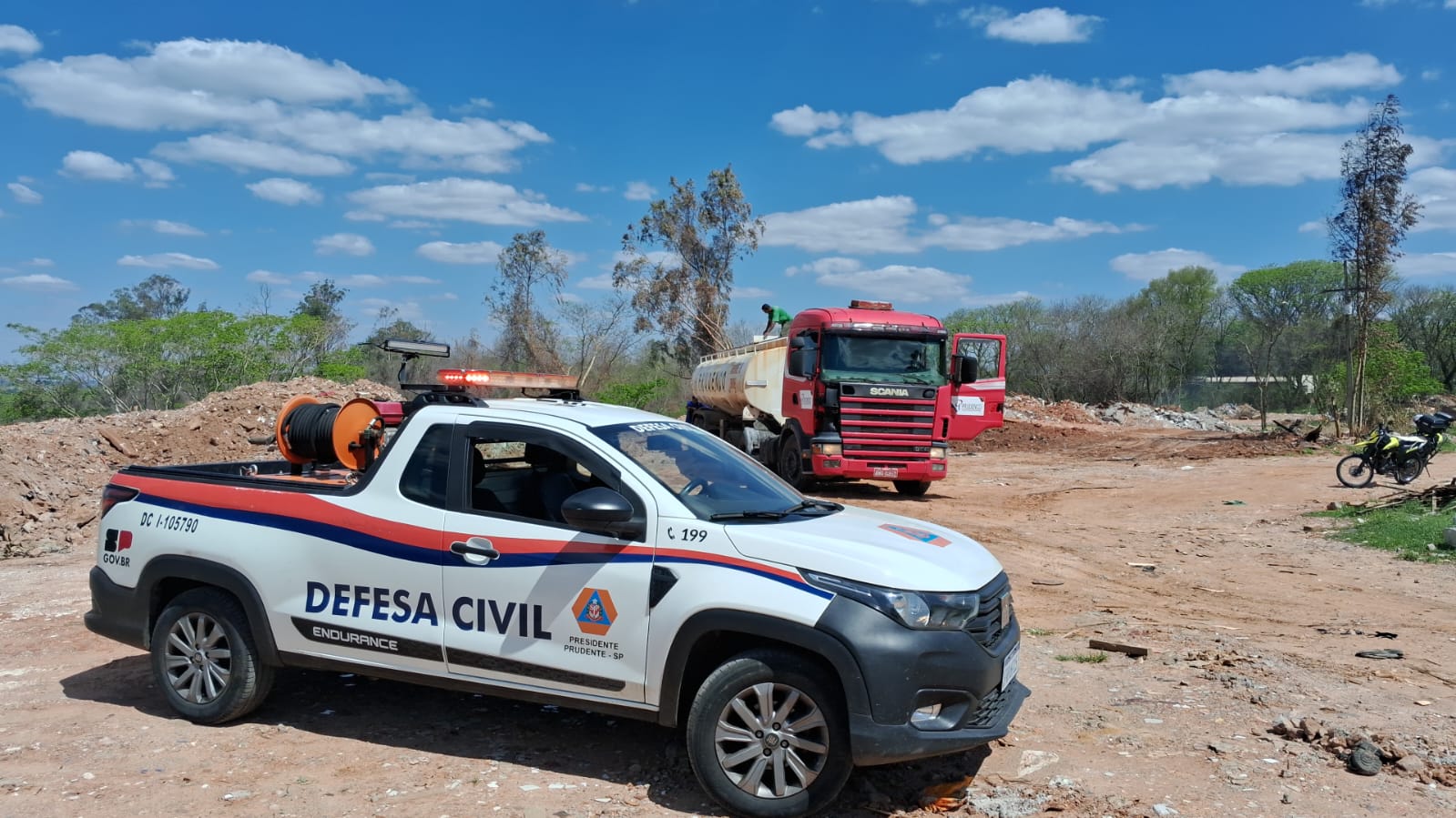 A Prefeitura de Presidente Prudente segue dando apoio ao Plano de Auxílio Mútuo (PAM), que coordena a força-tarefa multiagências montada para eliminar o incêndio subterrâneo na área localizada atrás da Escola Sesi, na Vila Furquim. Até a tarde desta sexta-feira (24), já haviam sido utilizados mais de 650 mil litros de água na operação. O trabalho vem apresentando resultados, com focos controlados na entrada do depósito. A ação é executada pela Coordenadoria Municipal de Proteção e Defesa Civil de Presidente Prudente e Corpo de Bombeiros, com o apoio das Usinas Cocal, Alto Alegre e Atena, empresa Tucanos, Cart, Eixo, SABESP e pelas Secretarias Municipais de Meio Ambiente, Agricultura e Obras. Também participam da operação caminhões-pipa e viaturas das Defesas Civis de Álvares Machado, Indiana, Pirapozinho, Presidente Bernardes, Santo Anastácio e Martinópolis. De acordo com o coordenador da Defesa Civil Municipal, Felipe Nogueira, a estratégia de injetar água diretamente no subsolo tem sido eficaz. “Depois de alguns dias de força-tarefa e de termos colocado em prática a estratégia criada pelo secretário municipal de Mobilidade Urbana e engenheiro da Defesa Civil, Adauto Bibiano, os resultados começaram a aparecer. Por isso, vamos manter o método durante o fim de semana”, destacou. O método consiste na abertura de valas no terreno, por onde a água é aplicada para resfriar o subsolo e eliminar os focos de calor que geram a fumaça persistente na região. Desde o início da semana, os trabalhos foram intensificados. O local, que é propriedade privada e vinha sendo usado irregularmente para descarte de lixo e entulho, foi lacrado pela Secretaria Municipal de Desenvolvimento Econômico e pela Defesa Civil, ficando terminantemente proibida qualquer utilização. A Secretaria Municipal de Assuntos Jurídicos prepara uma medida judicial para responsabilizar o proprietário do terreno pela situação. A CETESB, Polícia Militar Ambiental e Ministério Público também estão acompanhando e realizando as medidas cabíveis. A Prefeitura reforça que atear fogo ou descartar lixo em áreas irregulares é crime ambiental, prática que causa danos ao meio ambiente, coloca em risco a saúde da população e pode provocar situações de difícil controle, como o incêndio registrado na Vila Furquim. Por conta da fumaça, as aulas nas escolas municipais que estão localizadas na região foram suspensas na quinta e sexta-feira. A expectativa é de que sejam retomadas na terça. O SESI também está com as aulas presenciais suspensas e os alunos já frequentam aulas on-line. As equipes devem permanecer empenhadas no combate ao incêndio durante todo o final de semana ou até que a situação esteja controlada.