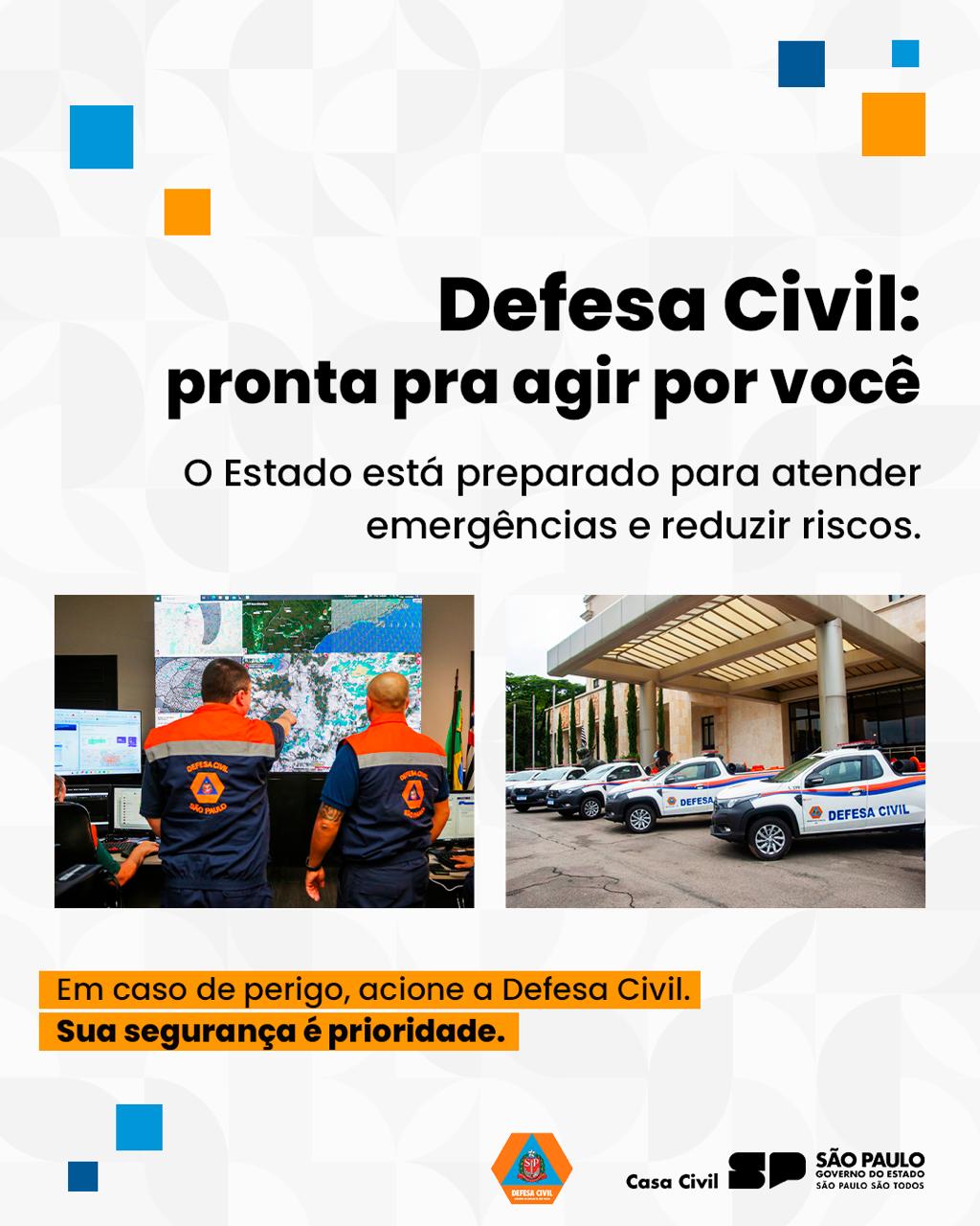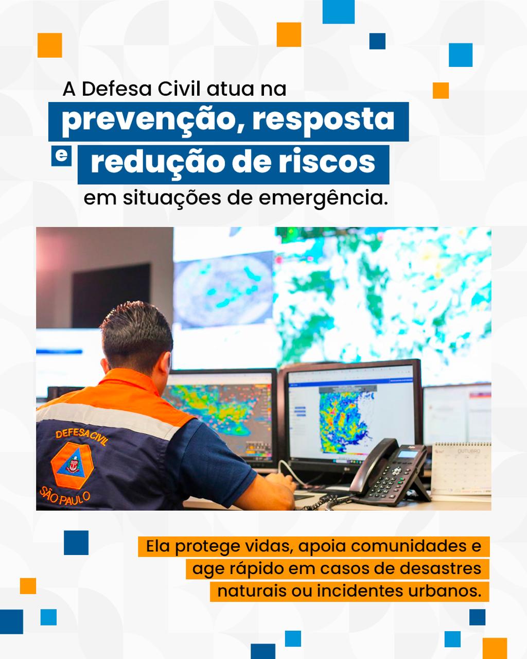 A Defesa Civil do Estado de São Paulo reforça à população a importância de saber quando e como acionar a Coordenadoria de Proteção e Defesa Civil em situações de risco. A instituição atua na prevenção, na resposta rápida e na redução de desastres, com o objetivo principal de proteger vidas e minimizar danos em todo o território paulista. De acordo com o órgão, a Defesa Civil deve ser acionada sempre que houver situações de emergência que representem risco imediato, como: